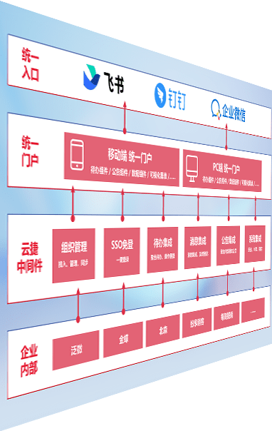 对协作平台提供支持服务,,,支持企业应用与协作平台对接,,包含组织同步、、消息集成、、、待办集成等。。支持目前主流的协作平台:钉钉、、、企微和飞书。。。。